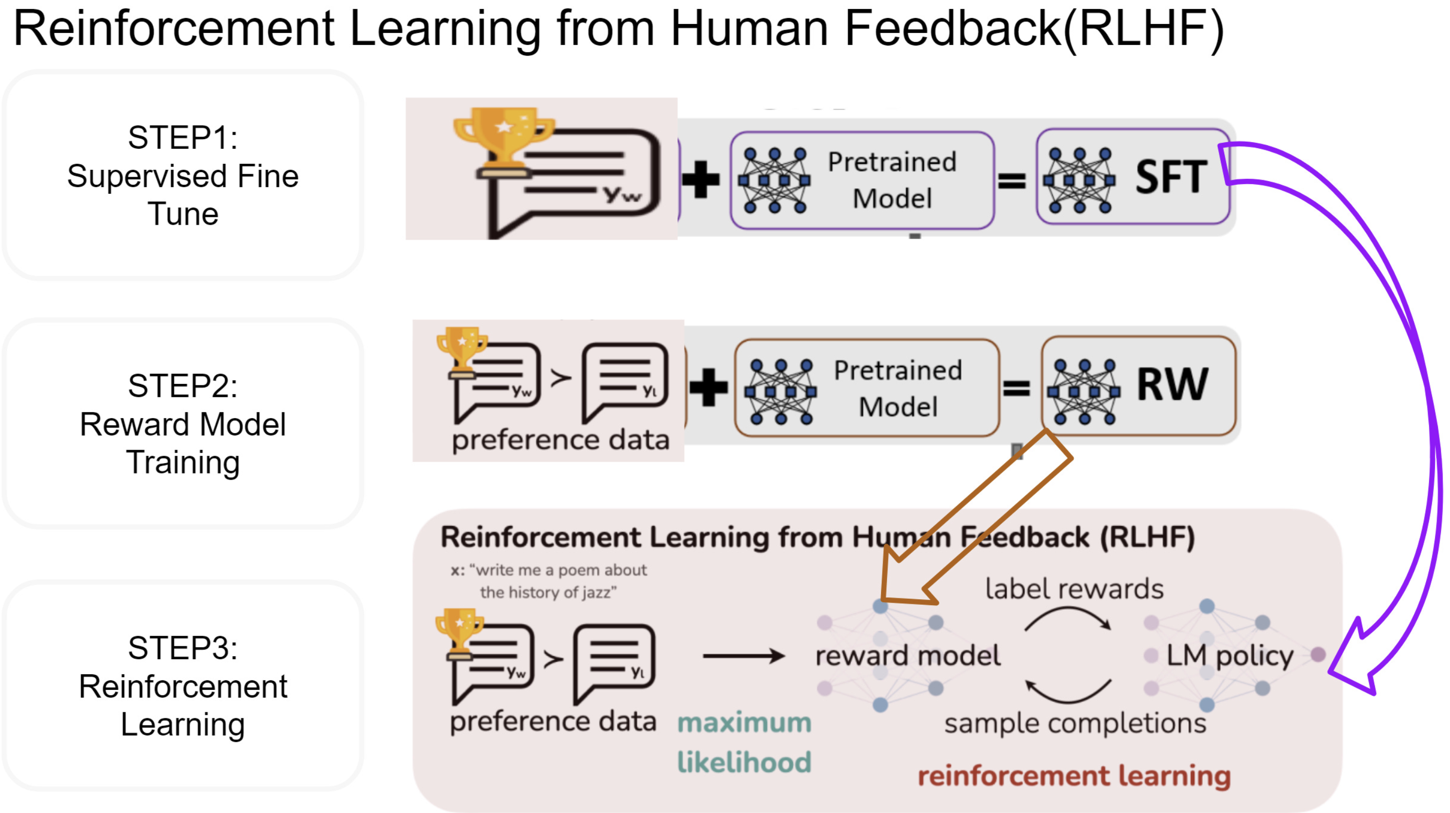 RLHF stands for Reinforcement Learning from Human Feedback, and it’s the approach that powered InstructGPT (which became ChatGPT) and basically created the modern aligned language model category. Here’s how it works: